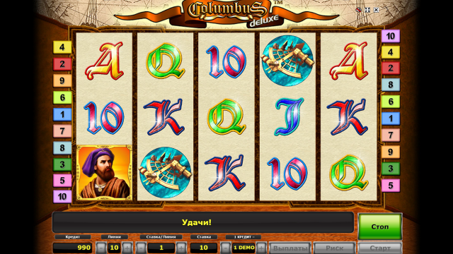 Слот Columbus Deluxe выпущен австрийским разработчиком Novomatic. Релиз состоялся 19 марта 2008 года. Аппарат популярен среди посетителей онлайн-казино, так как наделен простыми правилами, широким диапазоном ставок и бонусными функциями. Перед запуском спинов игроку требуется установить величину ставки и выбрать количество активных линий. Операции легко выполняются на панели управления.