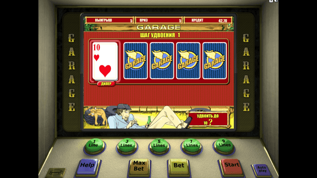Garage (Гараж) — 5-барабанный онлайн-автомат, на игровом поле которого одновременно отображается 15 картинок. Изображения расположены по сетке 5х3. Количество активных полос регулируется пользователями. Можно выбрать 1, 3, 5, 7 или 9 линий выплат.